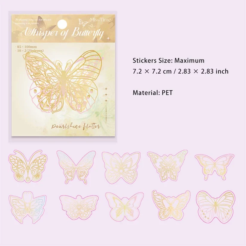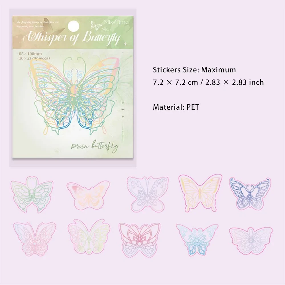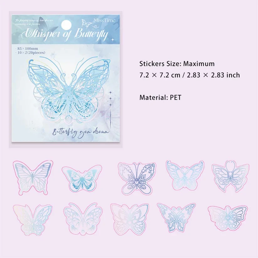 20pcs holographic cute butterfly sticker