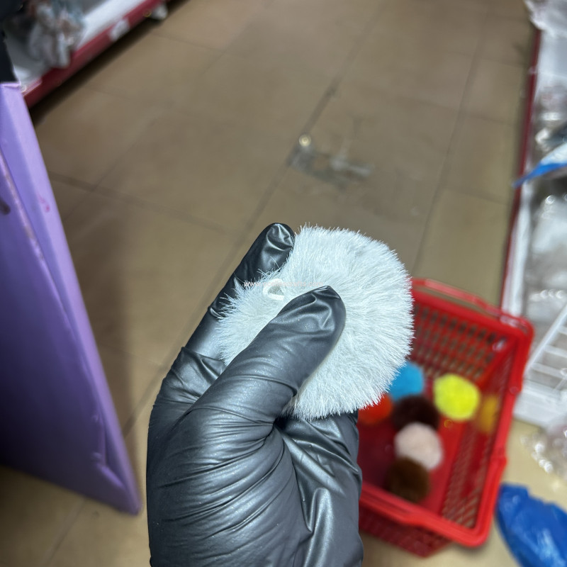 8cm Light Grey Fur Pompom with Elastic Cord for Keyrings