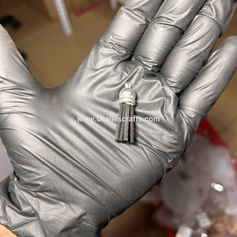 Black Silver Cap Leather Tassel