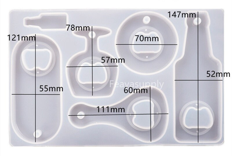 Bottle opener mold with accessories (3 opener metals and 1 screwdriver)
