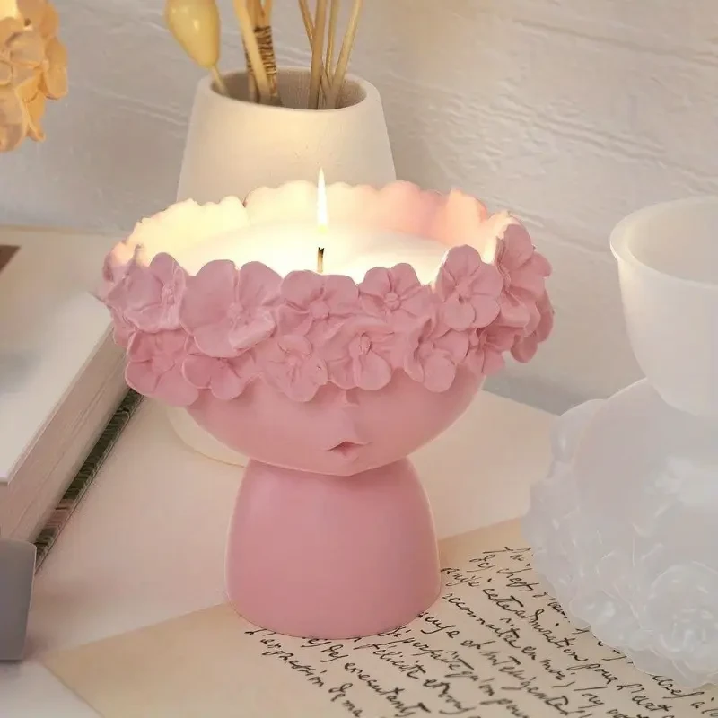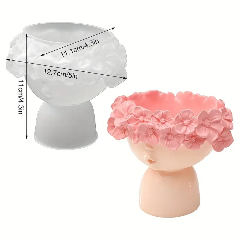 Cute girl decorative garland vase mold head flower vase with flower garland decorative
