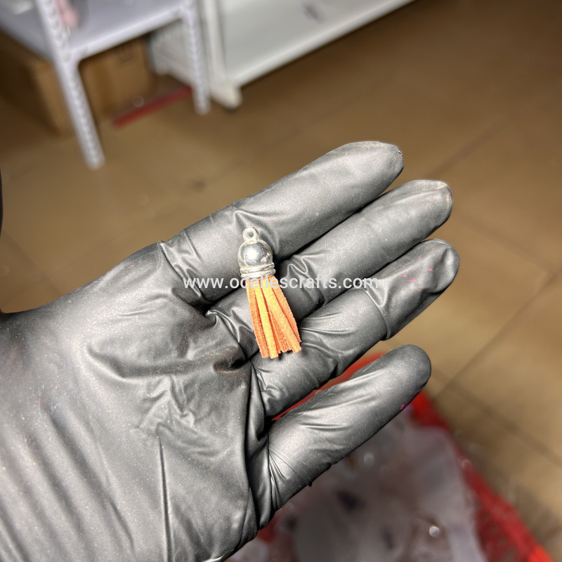 Deep orange Silver Cap Leather Tassel