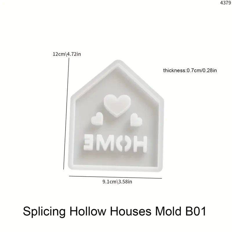 Hollow Splicing House Mold Front and Back- Type 1(HOME TEXT WITH 3 HEARTS)