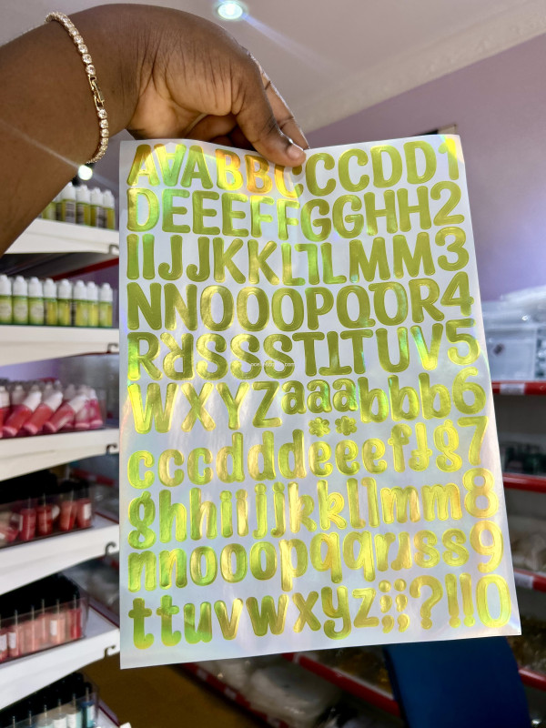 Shimmering gold holographic sticker for eye-catching designs and overlays.