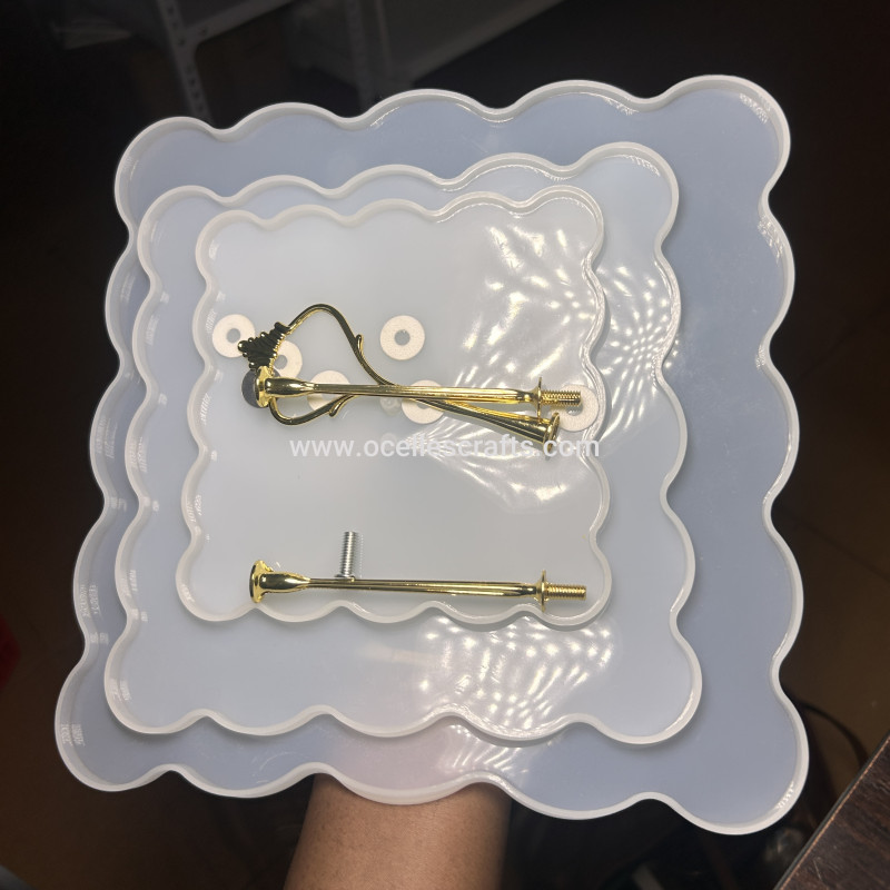 Wiggly edge square 3 tier square tray mold with Gold Accessories