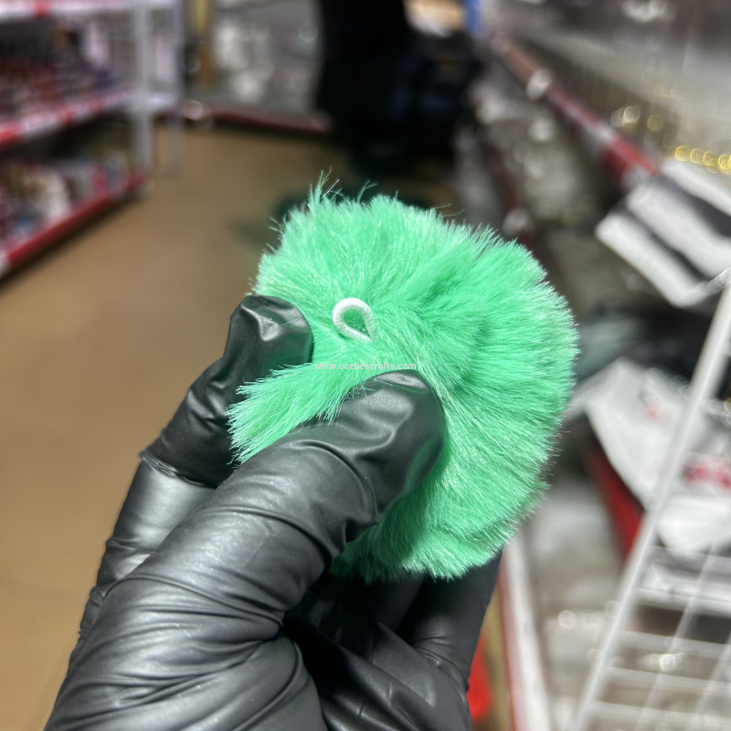 8cm Green Fur Pompom with Elastic Cord for Keyrings