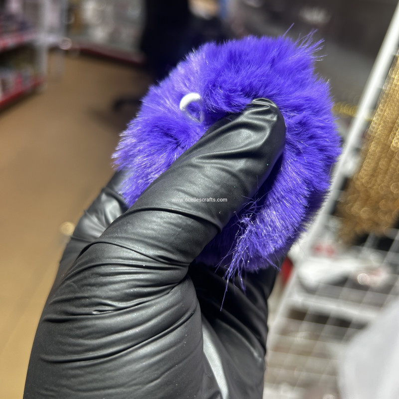 8cm Purplish Blue Fur Pompom with Elastic Cord for Keyrings