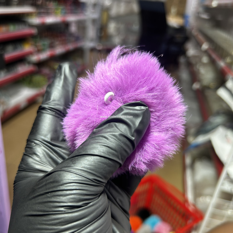 8cm Violet Fur Pompom with Elastic Cord for Keyrings