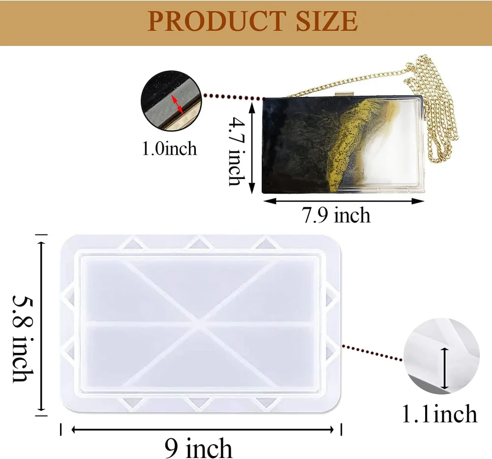 Resin clutch purse or Bag mold with frame and hand chain handle