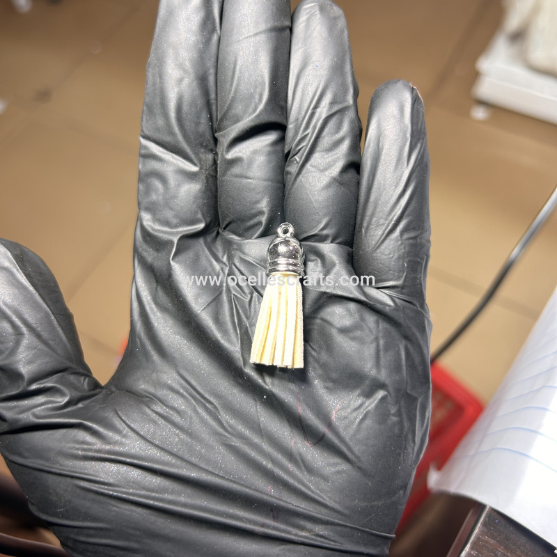 Beige Silver Cap Leather Tassel