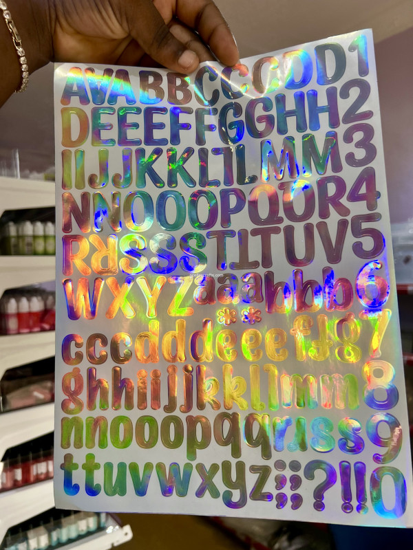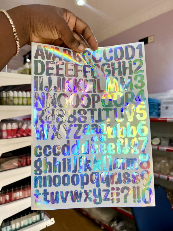 Shiny silver holographic sticker for dazzling, light-reflective designs.