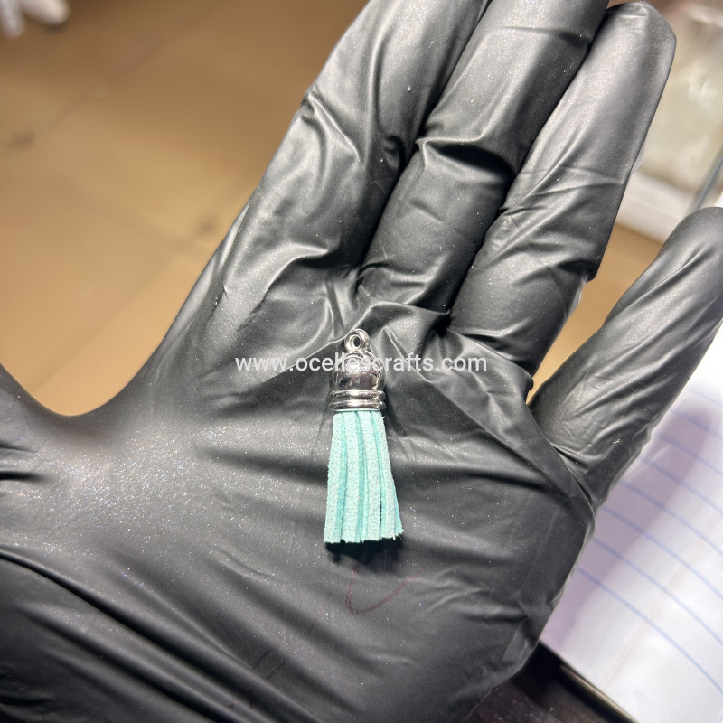 Mint Blue Silver Cap Leather Tassel