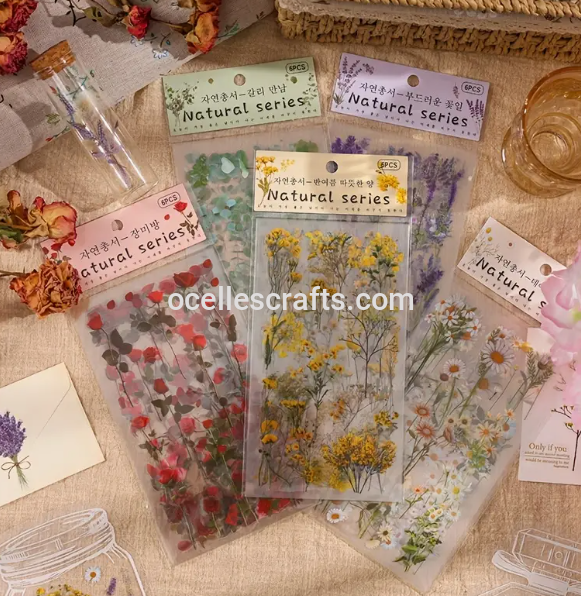 Nature-inspired green sticker sheet with earthy and botanical patterns.